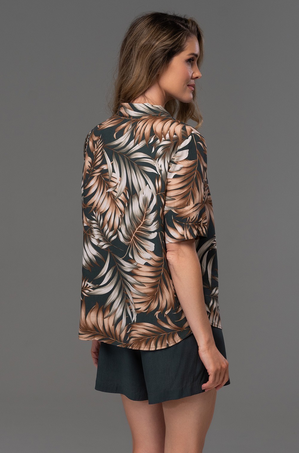 Комплект Mia-Amore состоит из жакета с коротким рукавом и шорт, жакет выполнен из принтованной вискозы, а шорты из однотонной. Жакет с застежкой на кокосовые пуговицы. По бокам шорт обработаны карманы.